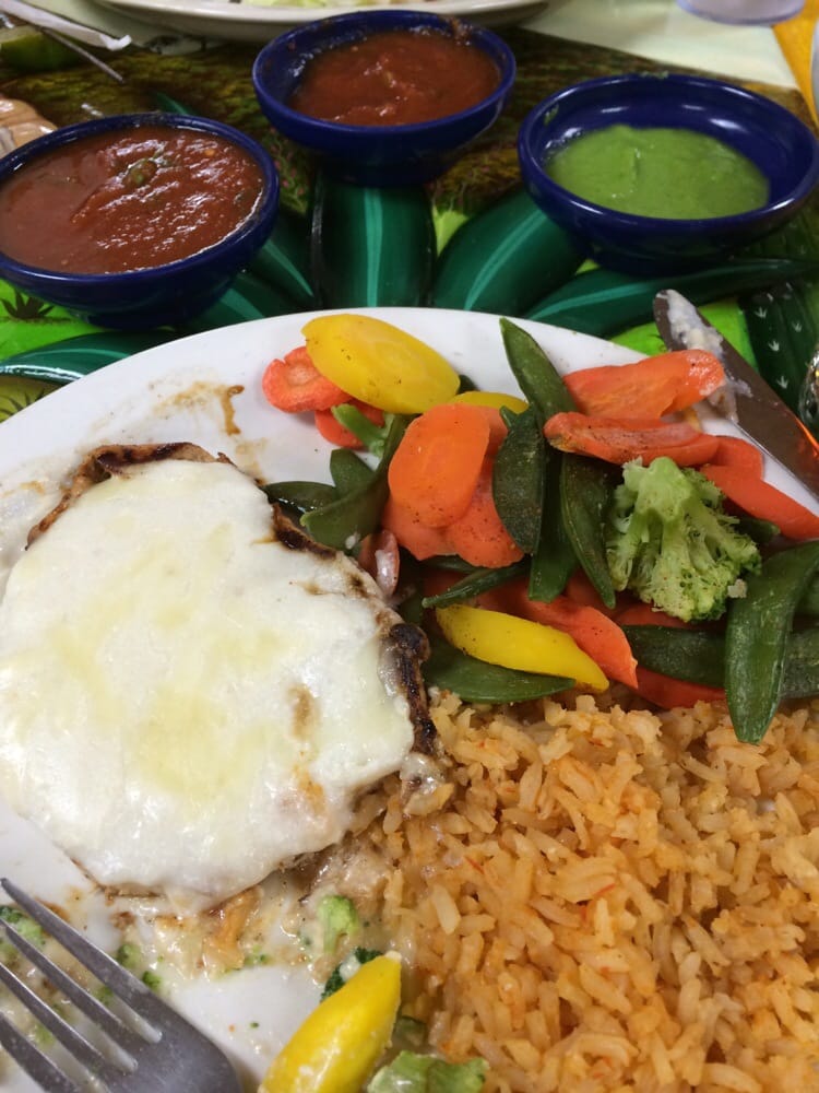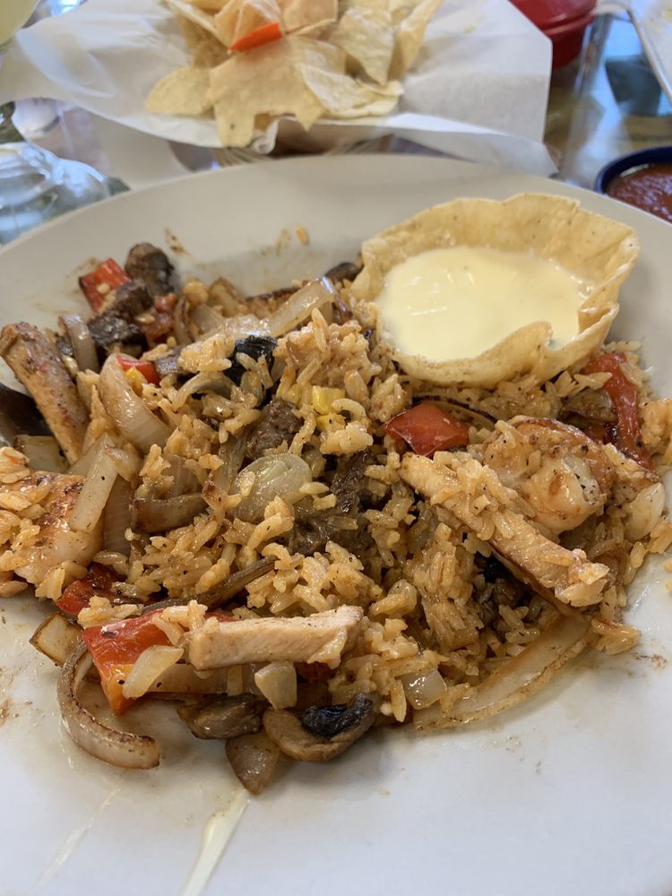 Grilled Chicken Shrimp, fresh lettuce, tomato, cheese, chips, guacamole, sour cream rice